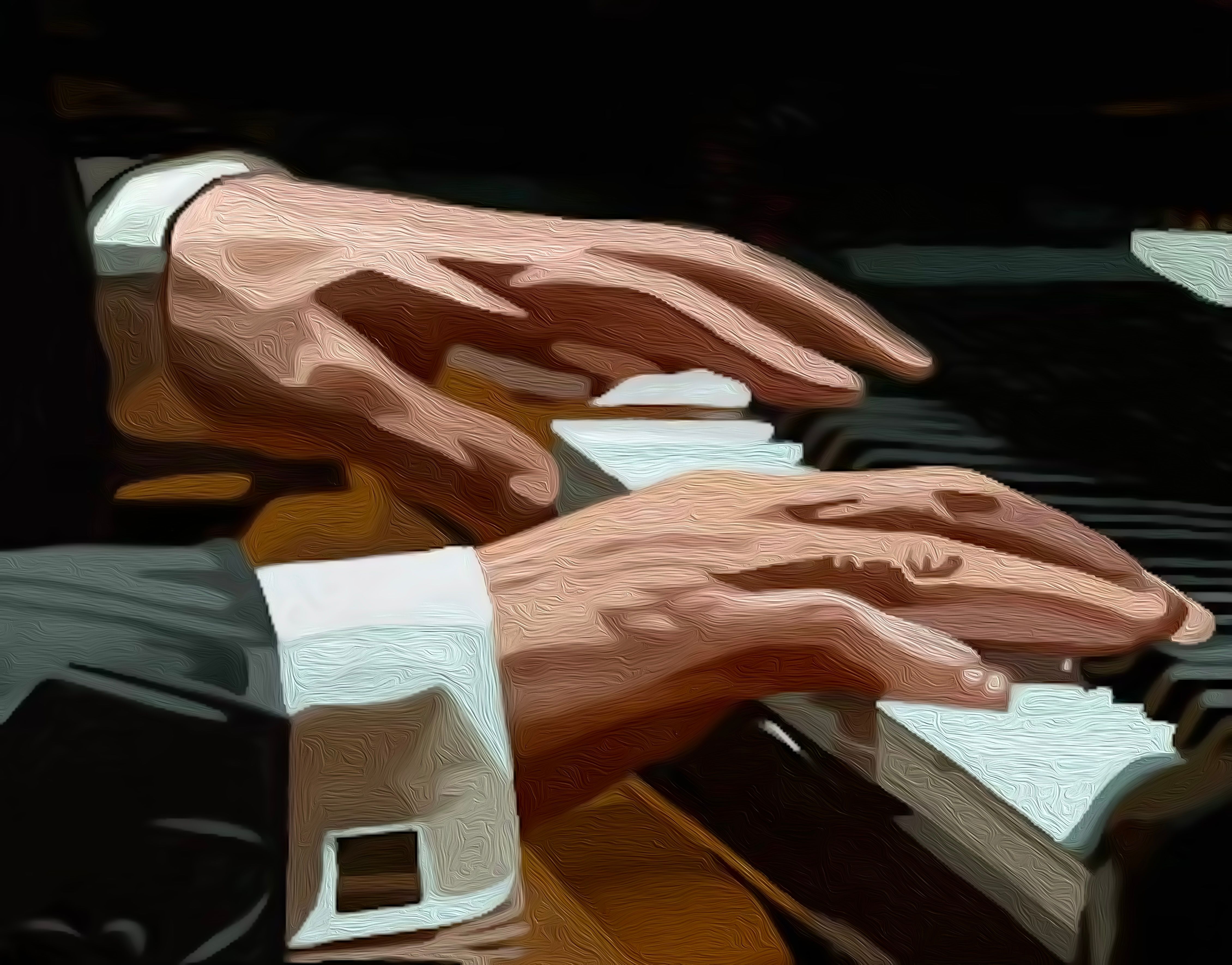 We are frequently tempted to use lots of colour where it isn't needed in our artwork and when experience should tell us that often 'less is more'. Take this piece for example. The composition focuses on the expressive movement of a pianist’s hands poised above the keys, rendered with a unique blend of traditional and digital techniques. The textured, swirling brushwork creates a sense of rhythm and motion, echoing the dynamic energy of a live performance.The artist’s attention to anatomical detail and the subtle interplay of light and shadow lend the hands a sculptural quality, while the crisp white cuffs and formal attire add a touch of sophistication. The monochromatic palette, accented by warm skin tones and the gleam of the piano keys, beautifully captures the setting and moment. Anyone who appreciates the intersection of art and sound, will recognise that this artwork with its restrained colour palette, could easily bring the elegance and passion of live music into your environment—where colour matters, and creativity meets innovation.